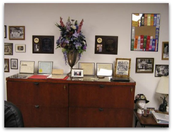 Old pedigrees, registrations, photos, convention ribbon badges, etc. are housed on the south wall of the library. The cabinets house many hundreds of pictures, ribbons, patches, files and tapes which all trace the history of the ARBA.
